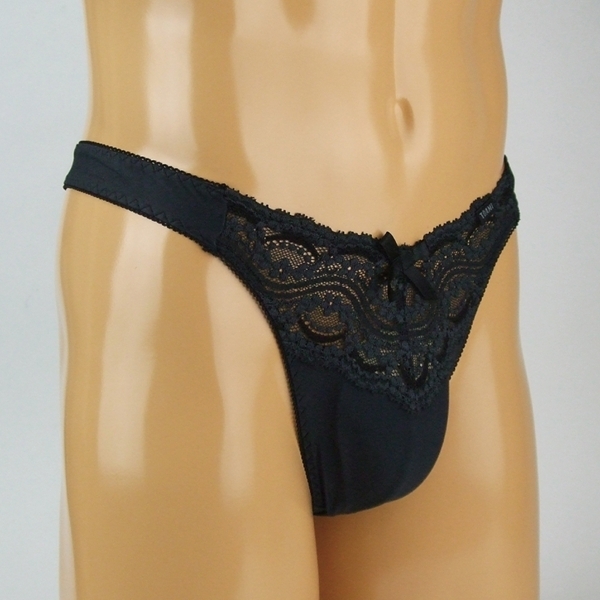 > メンズ ストレッチ&レースコンビTバック (ブラック)
