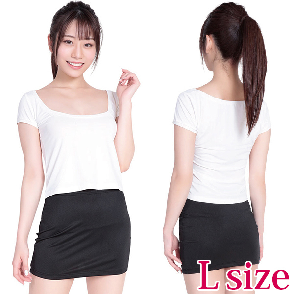 Lサイズ:Tシャツ(着丈47cm・袖丈12cm)、ミニスカート総丈37cm、サイズ目安(B86〜94cm・W69〜77cm・92〜100cm) パッケージ:28.0×16.0×1.6cm