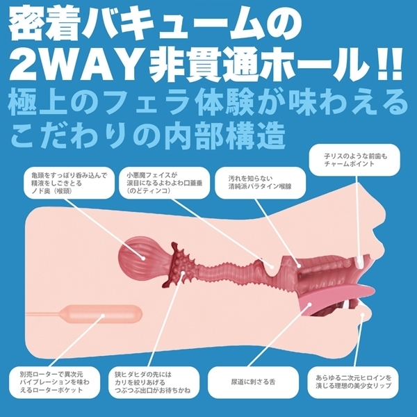 ●内部構造・あらゆる二次元ヒロインを演じる理想の美少女リップ・子リスのような前歯もチャームポイント・尿道に刺さる舌・汚れを知らない清純派パラタイン喉腺・小悪魔フェイスが涙目になる、よわよわ口蓋垂(のどティンコ)