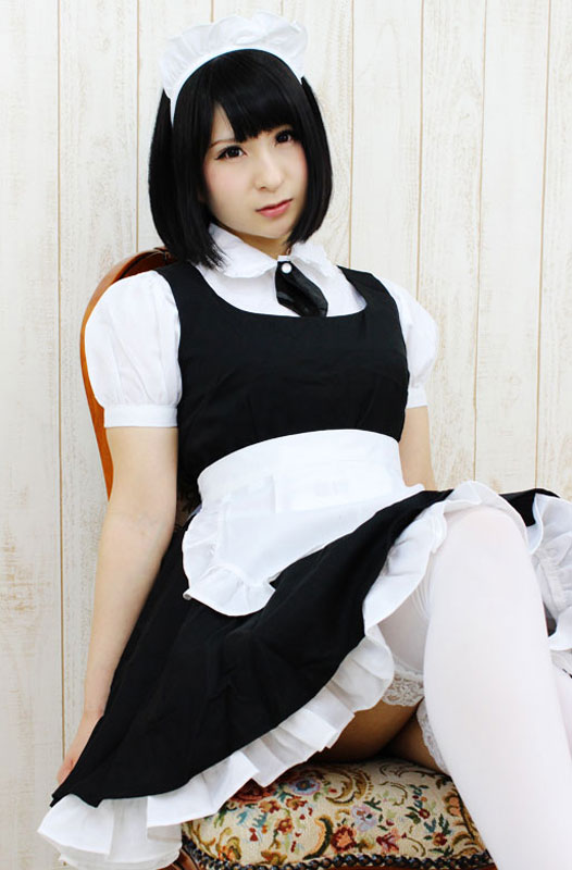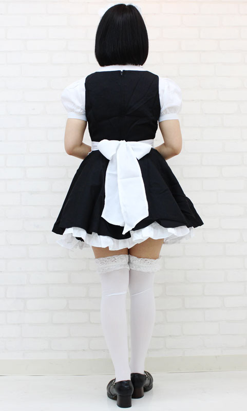 セット内容:ブラウス、タイ(ナップボタンにて取り外し可能)、ワンピース(背中ファスナー)、エプロン、カチューシャ