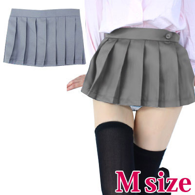 本格的な女子高生コスプレ!超ミニ丈の無地プリーツスカート(グレー)。