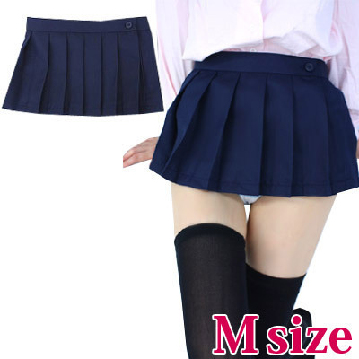 本格的な女子高生コスプレ!超ミニ丈の無地プリーツスカート(紺)。