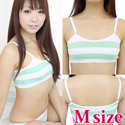 楽チン!かわいい!グリーン×ホワイトのしましま柄スポーツブラ(M)。