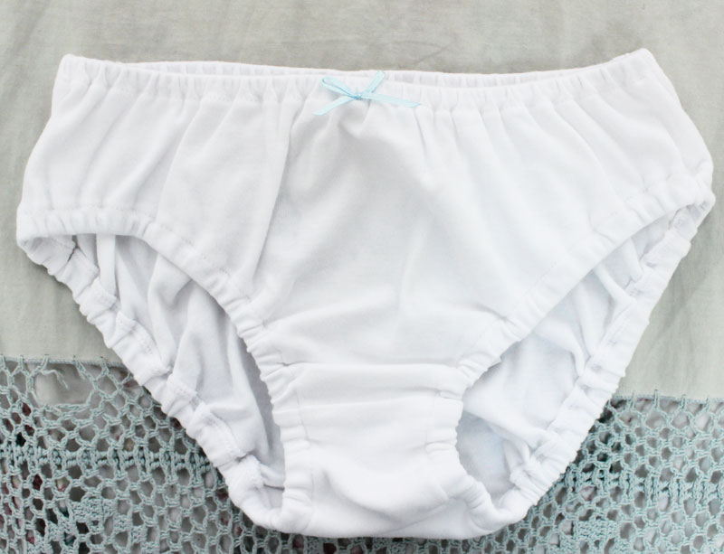 フロントにちょこんと付いた水色リボンがキュートな純白の綿ロリパン。