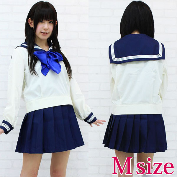青いリボンが爽やか!キュートな長袖セーラー服コスプレ。