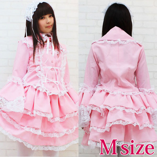 セット内容:上着(前ボタン)・スカート(ウエスト部分ゴム、スカート3枚仕立て、裏地付き、チュールパニエ付き)・付け衿(ボタンにて着脱可)・ヘッドドレス