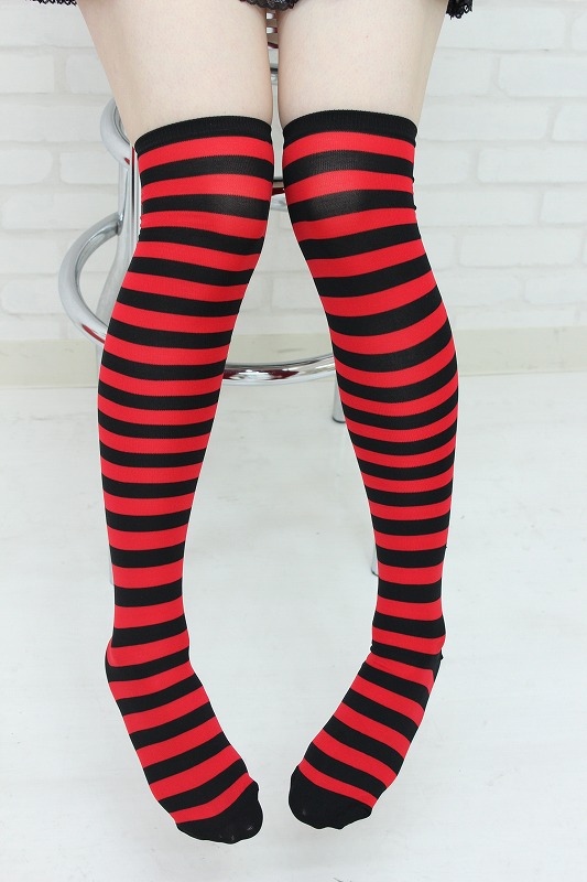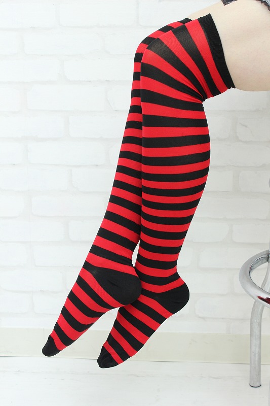 コスチュームのアクセントに!レッド×ブラックのボーダー柄ニーハイ。