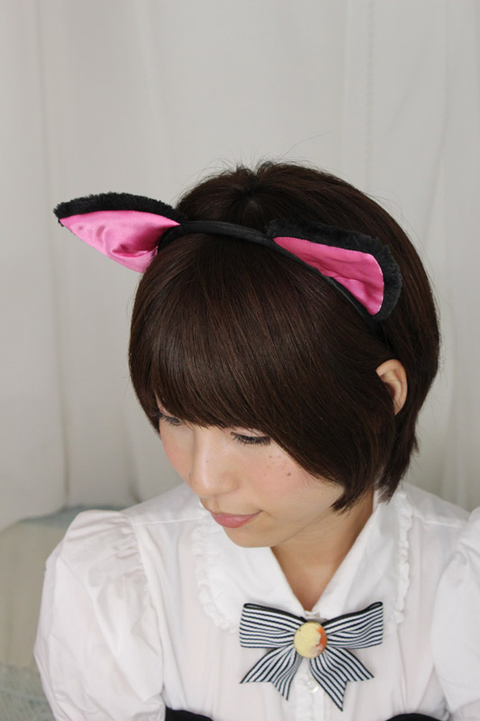黒×ピンクカラーの猫耳部分は、キュートな前向きタイプ!メイド服やナース衣装など、様々なコスチュームと相性抜群の萌え萌えコスプレグッズです。