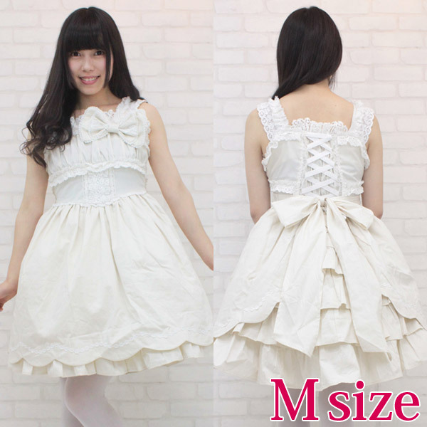 セット内容:ジャンパースカート(横ファスナー、後ろ編み上げシャーリング)・リボン(ピンにて取り外し可)