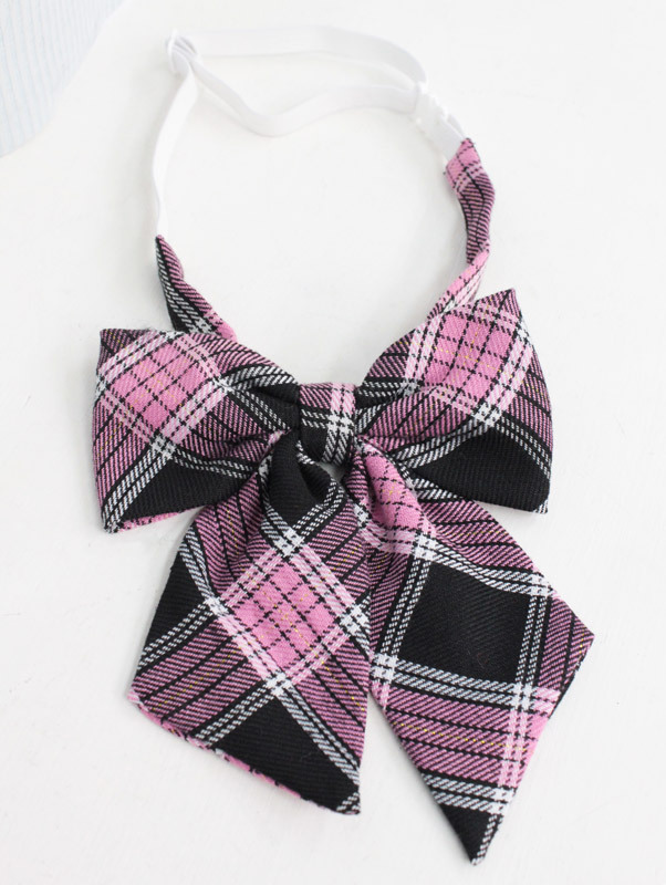 制服コスプレに必須のアイテム!女の子が大好きなピンクラメチェックで仕上げたスクールリボン(単品)。