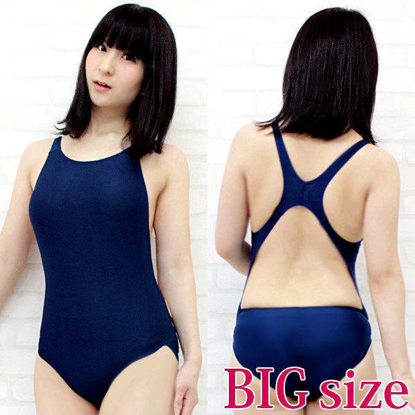 定番のネイビーカラーと正面から見た姿でシンプルな仕上がり!かと思いきや、大胆に露出したバックスタイルが、セクシーさ満点の競泳水着コスチューム!クビレも丸見えなので、美しいボディラインを強調できます。