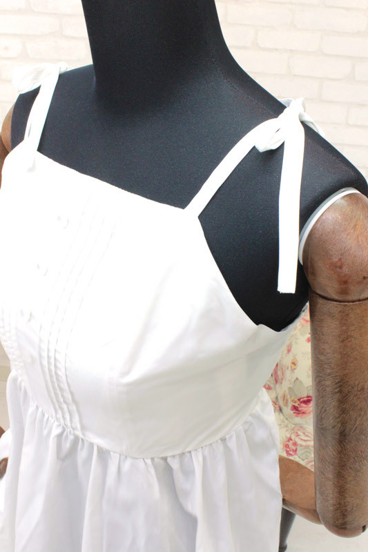 肩紐の可憐なリボン結びや、裾のレースが愛らしい!日焼けした肌にも見事に映えるワンピースは、コーディネイト自在のサマーコスチュームです。