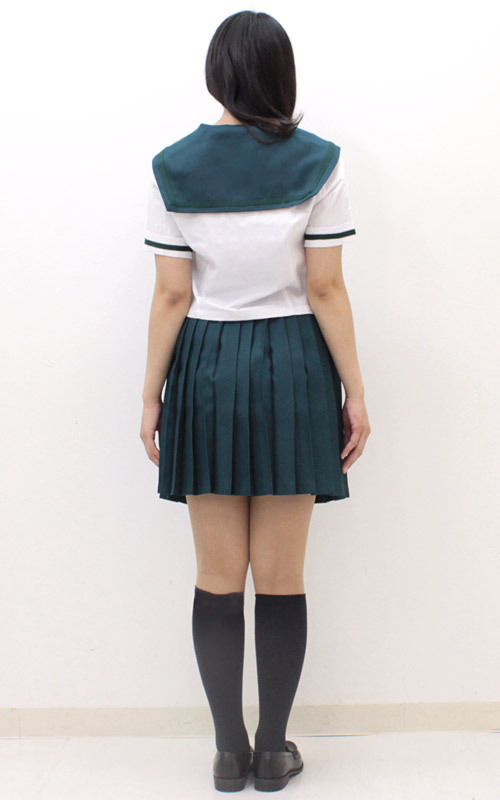 お嬢様学校として有名な学校の夏服セーラー服(M)がついに登場!ちょっぴり珍しい深緑カラーでキュートに仕上げた制服コスプレです。