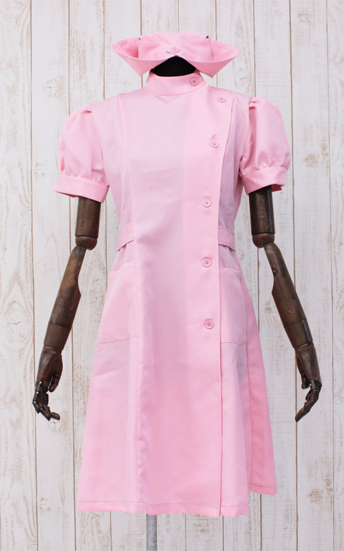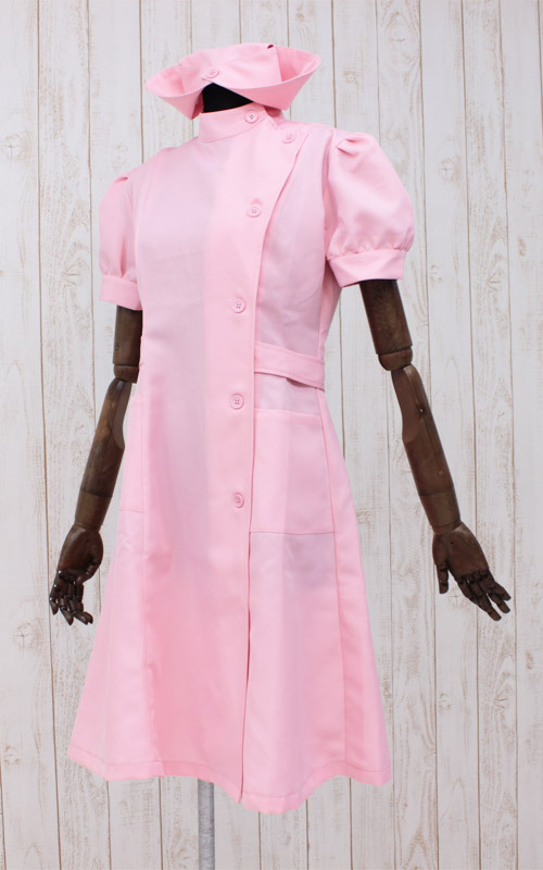 セット内容:ワンピース(前ボタン留め・立て襟・ポケット付き・裏地無し)、ナースキャップ 素材:ポリエステル100%