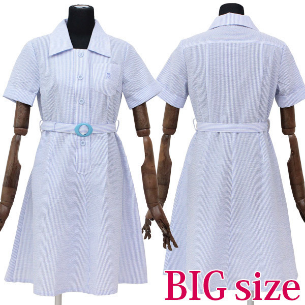 ●風薫る半袖ワンピースの盛夏服タイプ●前ボタン留め仕様●リアルな刺繍入り胸ポケット●スカート部分にポケット付き●付属のベルト調整でウエストマーク可。