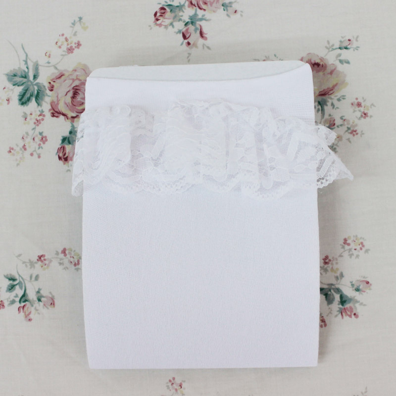 ●純白レースのホワイトニーソ●肌触りの良いナイロン素材●ストレッチレースで履き心地抜群。