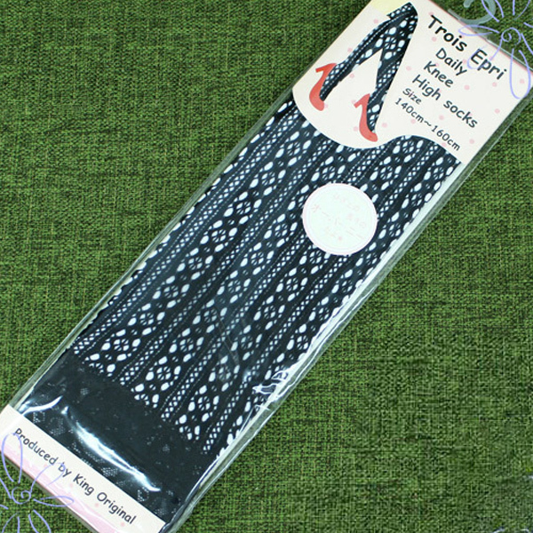 > レース付き花柄メッシュニーハイソックス 黒 140〜160cm