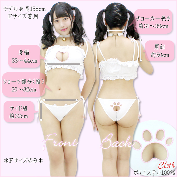 フリーサイズ 上衣:身幅33〜44cm・肩紐約50cm ショーツ:幅20〜32cm・サイド紐約32cm チョーカー:約31〜39cm(チェーン部分含む)