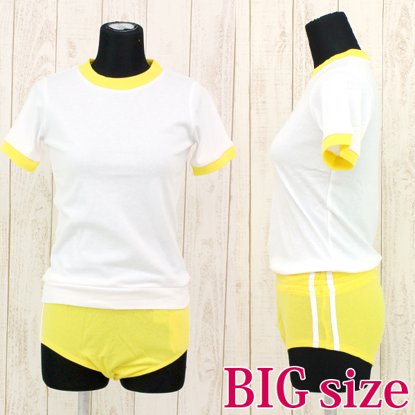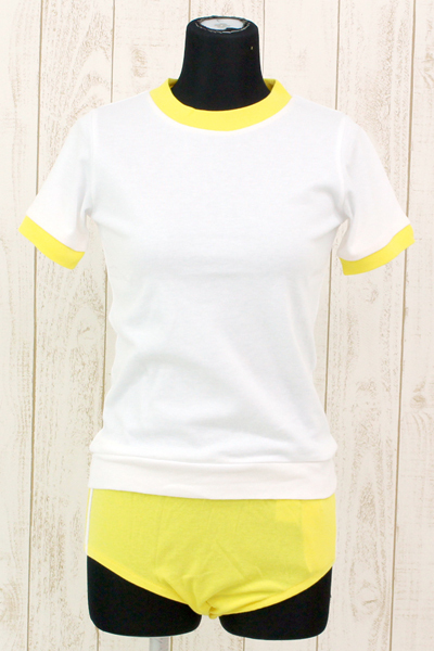 穿き心地の良いウエストゴムで仕立てたイエローのブルマに、トップスを合わせたシンプルな体操服コスプレです。