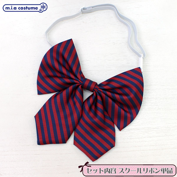 紺とエンジを組み合わせた大きめのストライプ柄のスクールリボン。