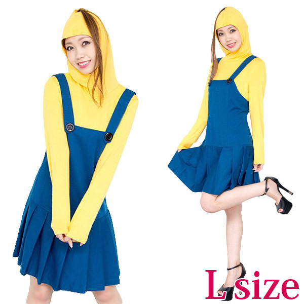 黄色と青のカラーリングが特徴的!某人気キャラをイメージした長袖仕様の可愛いデニム風一体型ワンピース(背面ファスナー式)。