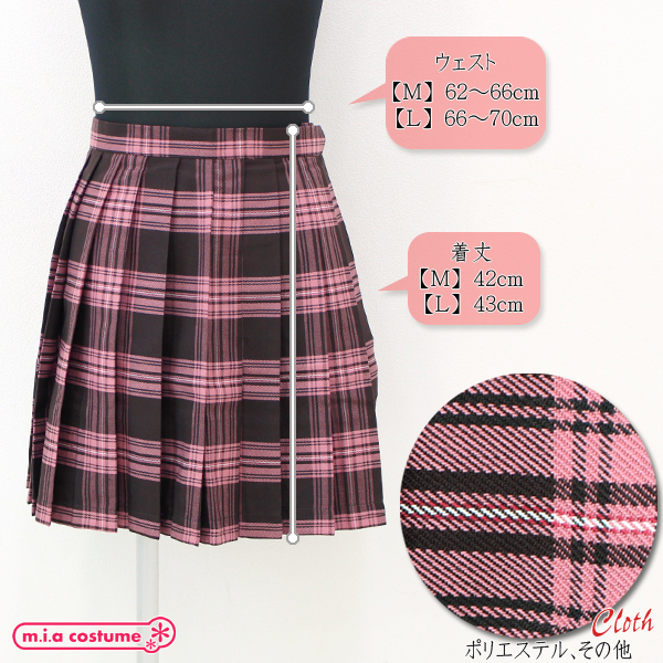 > ポケット付きのチェック柄プリーツスカート単品 ピンク×ブラウン Mサイズ