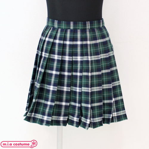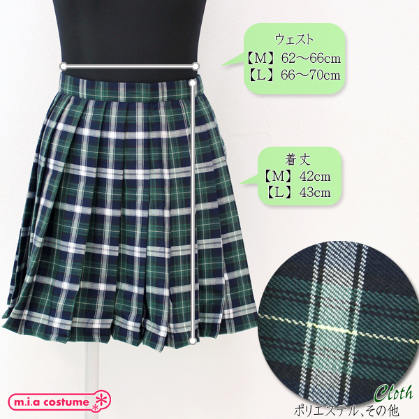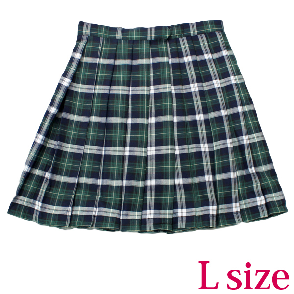> ポケット付きのチェック柄プリーツスカート単品 緑×白 Lサイズ
