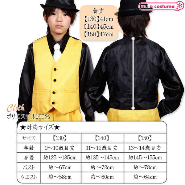 130サイズ 対応サイズ:身長125〜135cm・B〜67cm・W〜58cm 実寸:着丈41cm