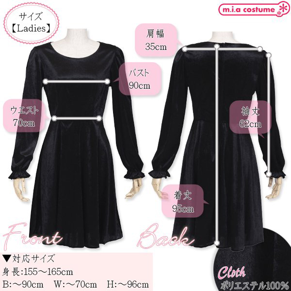 対応サイズ:身長155〜165cm・B〜90cm・W〜70cm・H〜96cm 実寸:B90cm・W70cm・肩幅35cm・袖丈62cm・着丈95cm
