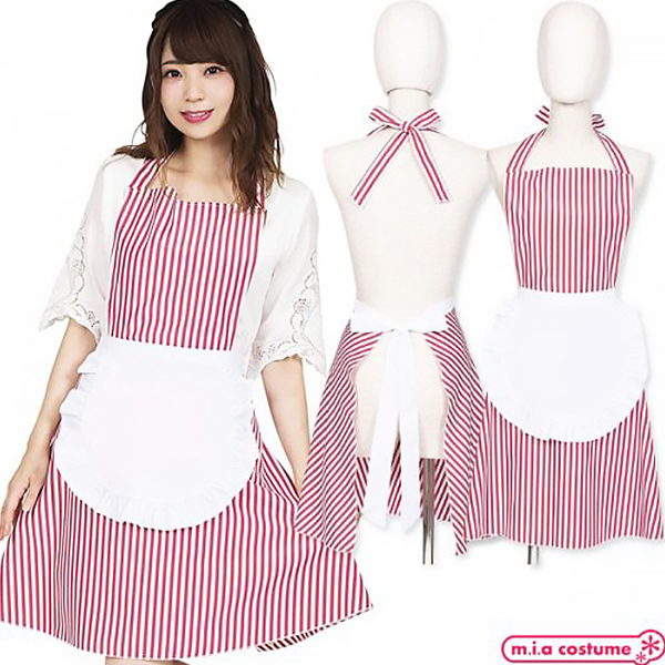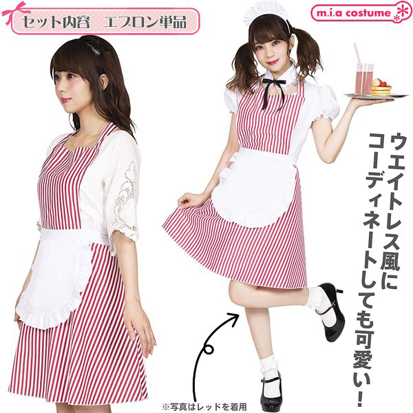ウエストの白いフリルエプロンは一体型になっていて、首と腰でリボン結びするタイプだから体型にあわせてサイズの調整が可能です♪キッチンだけでなく、お料理教室やプレゼントとして、ホームパーティーなどにも!アメリカンダイナーやウェイトレス風にもコーディネート出来るので、学園祭、カフェイベントでの使用にもおすすめです!