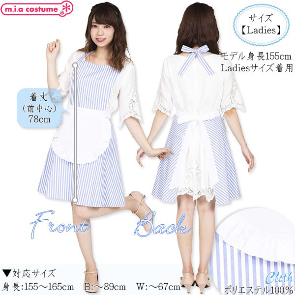 セット内容:エプロン単品(首リボン、腰リボン) 素材:ポリエステル100%