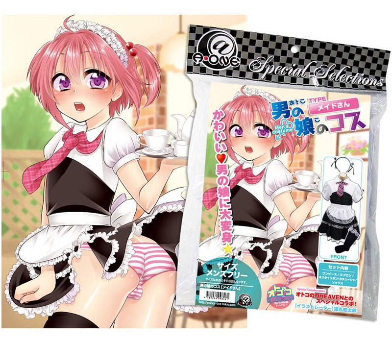 男の娘待望、メンズフリーサイズ!桃色ネクタイが超可愛い、メイド服コスチューム。