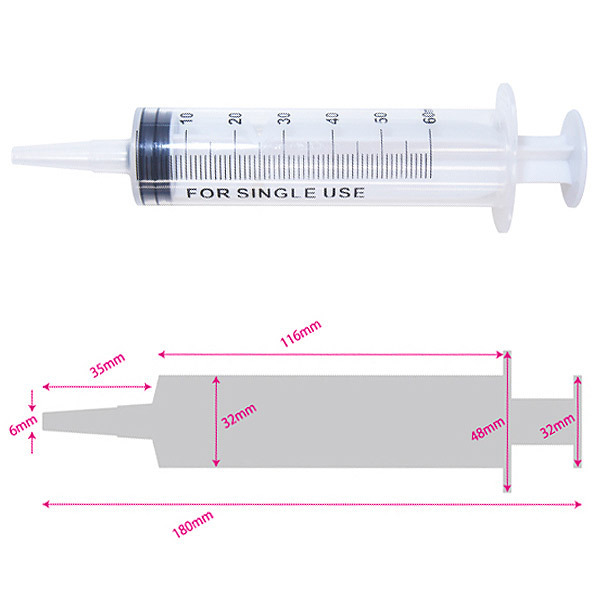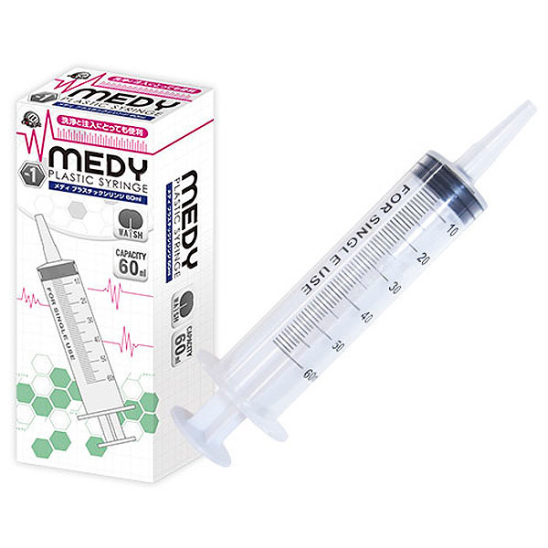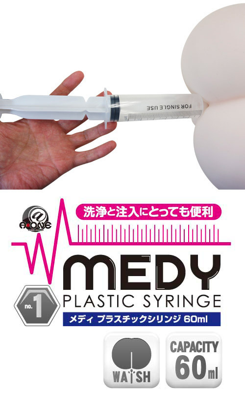 ●女性でも片手で扱える小ぶりサイズ●アナルへの洗浄&注入がスムーズに行えるプラスチック製シリンジ(60ml)●注入量が一目でわかる目盛り付きなので初心者でも安心。