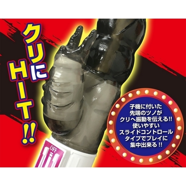 ●逞しいスモークブラックボディ●膣を満たす最大径4.3cmの極太●団子のような凸凹+背面イボ●膣をかき乱す力強い回転刺激●クリバイブ先端に二股のツノ●小刻みに振動してクリにHIT●無段階スライドコントロール●振動&回転は個別に操作可能●安心安全の日本製。