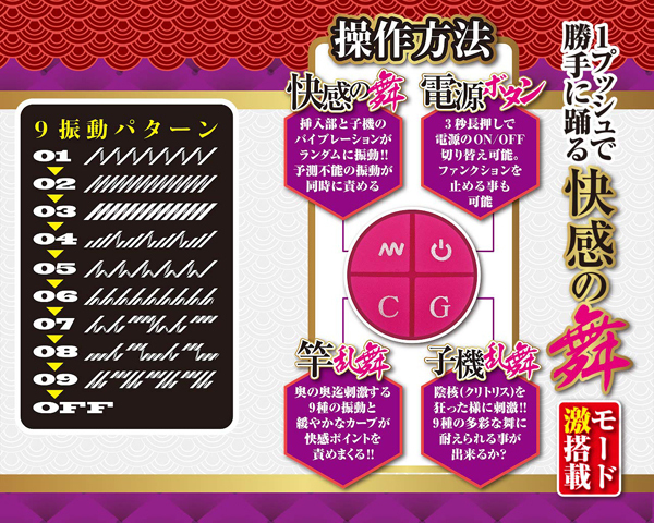 また予測不能な振動が楽しめる快感の舞モードを搭載し、さらに楽しくご使用いただけます。