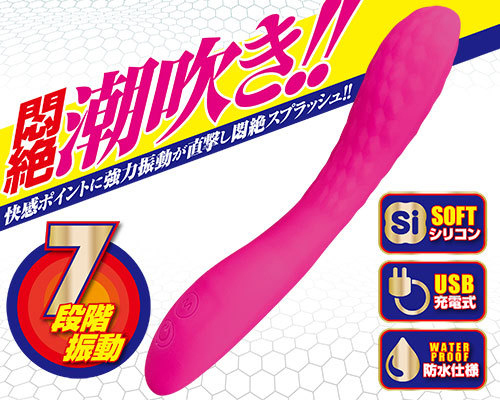 力強い振動と7段階の豊富な振動パターンでGスポを徹底刺激!湧きおこる快感からの潮吹き体験にハマること間違い無し♪防水製で使用後は丸洗い可能!滑らかな挿入感とプニプ二とした感触が気持ちいいシリコン製バイブです。