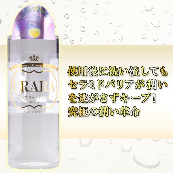 大人気「URARA(ウララ)」シリーズから、潤い浸透成分セラミドやコラーゲン、ヒアルロン酸など美容に嬉しい3つの成分を使った贅沢ローション登場!こってりとした質感が摩擦を軽減しスムーズなプレイをサポートします。
