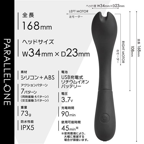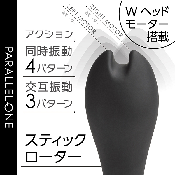 先端に並列で2つのモーターを搭載して、個別に振動させる事が出来るツインモータースティックです。