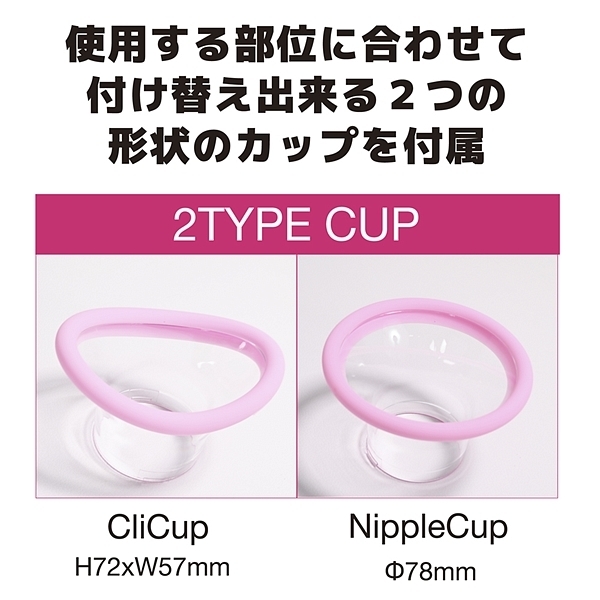 部位に合わせてチョイス出来る取り外し可能な二つのカップ付属。