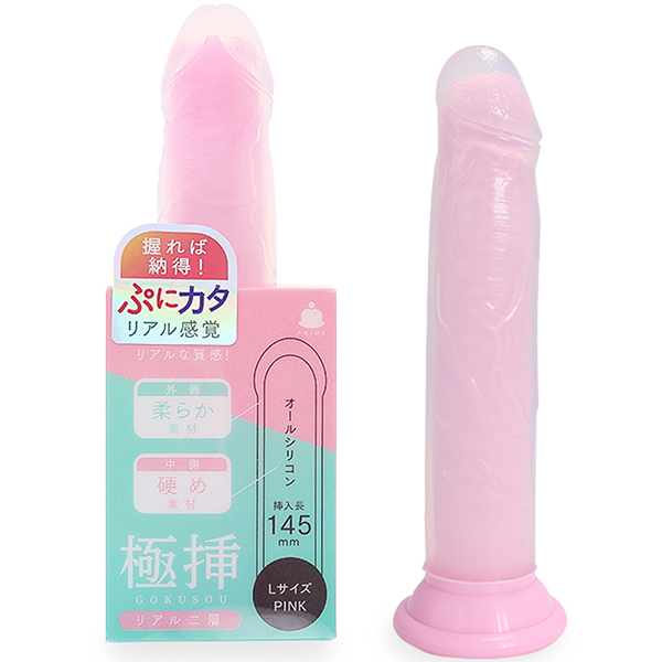 しっかり届くリアルな感触を追求したディルドタイプです♪全長約16cm、挿入可能長約14.5cmの満足感あるボリュームが魅力です!中には芯のある硬め素材を、外側にはぷにっと柔らかい層を採用した二層構造です♪リアルな手触りとしなやかさを両立し、自然なフィーリングを追求しています!吸盤付きなので、床や壁にしっかり固定でき、両手が使える安心設計です♪使用中のズレを気にせず、自分のスタイルで楽しめるのもポイントです!見た目はクリア×ピンクのかわいらしいカラーで、気分も明るくなります♪高品質なシリコン素材を使用しており、お手入れもしやすく清潔に保てます!適度な重みと安定感で、初心者から経験者まで幅広くおすすめです♪しっかりと深さを求める方にぴったりなLサイズ仕様です!快適なセルフケアタイムをサポートする、頼れる一本です♪