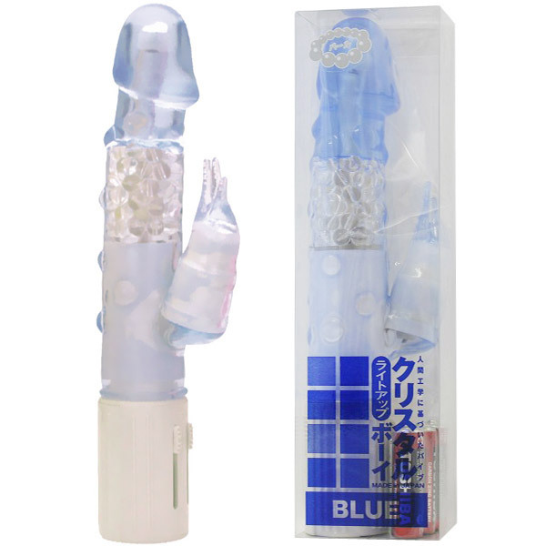 人間工学に基づいた昇天必須の快感バイブ「クリスタルボーイパール入り ブルー」。