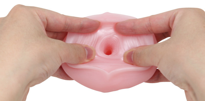 素材はマッハでストロークしても破れない、バンジータッチ素材を採用!ぱっくり開いた膣穴に挿し込めば、肉厚の細かいヒダが締め上げてきます!また、挿入口に施されたバウンドヘッド加工で、普通のストロークでは味わえないスライド感も楽しめます。