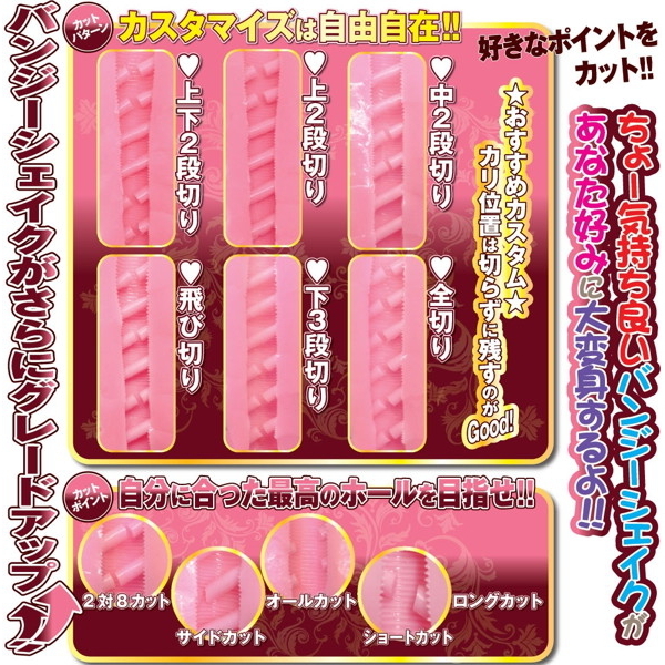 オナホ界の革命児!?ムービング形状の非貫通型オナホール「バンジーシェイク」がさらに進化して登場!内部のストリングスが、前作の3本から6本になりました。