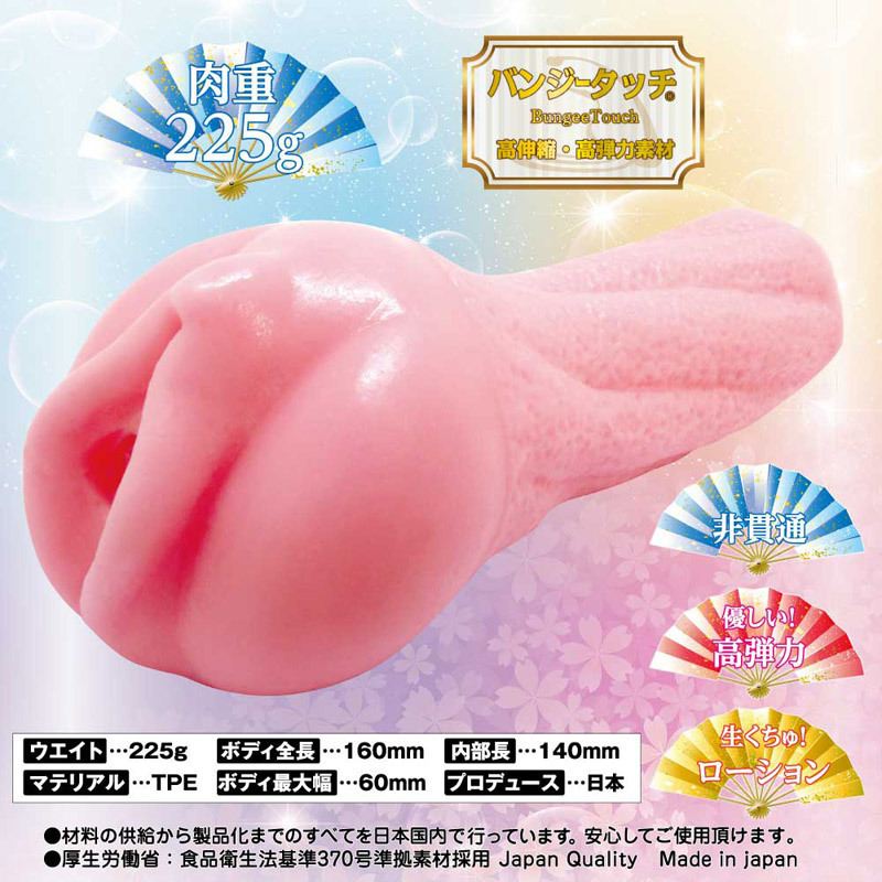 ●高伸縮&高弾力のバンジータッチ素材●3層の膣壁がうねる螺旋構造●メッシュ状の網目ヒダ壁●アクセントを生む大小の快楽ツブ壁●奥まで続くびっしり横ヒダ壁●ギュギュッと絞りをきかせた二段締め●安心安全な日本製。