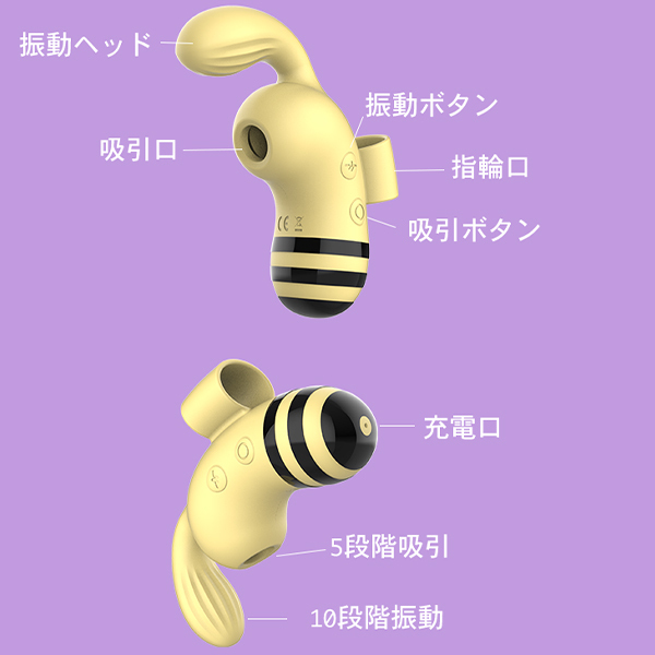 可愛い見た目、滑らかな表面と流線型のデザインによるクリと膣内を同時に、たまらない内外の複合刺激!ぐいっと満足感が下から全身に伝わり潮が飛び散るほどの快感を、たっぷりご堪能ください【5種類吸引+10種類振動】敏感部分に直接触れることなく、超パワフルな吸引が味わえる吸うやつとしてはもちろん、バイブとしてもローターとしても使える。