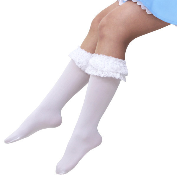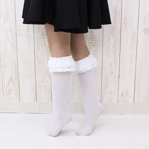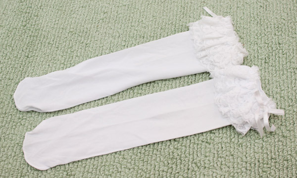 ティアードレースに細めのリボンがベストマッチ!甘めのコスプレにプラスしたい二重レース付きの白ハイソックス。