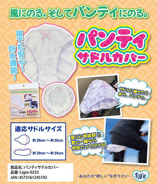 思わずドキッ!大人気パンティシリーズからサドルカバーが登場♪フルバックパンティを自転車のサドルカバーにしちゃったジョークグッズです!座り心地も抜群で、防水機能付き。