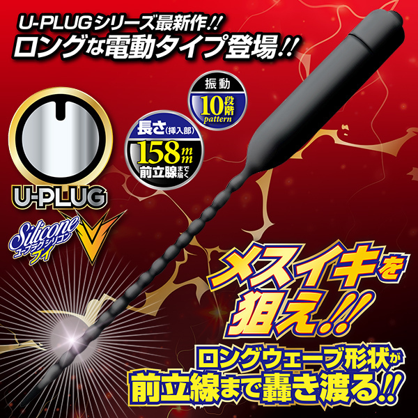挿入刺激&拡張で上級者も納得!!ロングウェーブ形状で前立腺まで轟き渡る!!尿道アイテム『U−プラグ』シリーズにロングな電動タイプ登場!!悶絶圧迫振動でメスイキを狙え!!強力振動が尿道内部を直撃!!なめらかシリコン製で柔軟性バツグン!ポコポコした形状を奥まで押し込めばスティックが前立腺まで到達!!感じたことのない刺激を手に入れろ!!・シリコン素材・10段階振動・生活防水【ご注意】無理のない範囲でご使用ください。