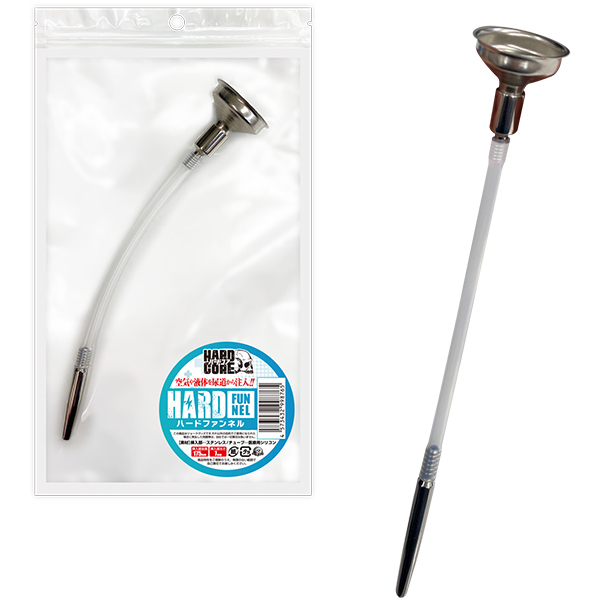 荒々しい刺激が楽しめるグッズブランド『ハードコア』シリーズに、漏斗付きプラグがラインナップ!本体フロントに備わった漏斗から、液体や空気を入れLet’s play!!チューブはメディカルグレードシリコン素材で柔らいから、ナカに入れても安心。