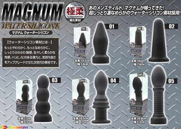 ブラックが冴えわたる本格派ディルドが最新素材になって新登場!極上素材を採用した「マグナム ウォーターシリコン」!黒い欲望を満足させるエキスパートなボディライン。